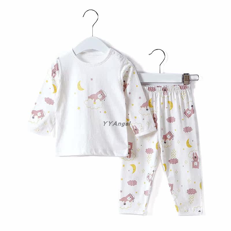 Baby Sleepwear Suit Summer Thin Air Conditioning Suit No Bones Small Children's Home Conserved Long Sleeve Pure Cotton Baby Underwear