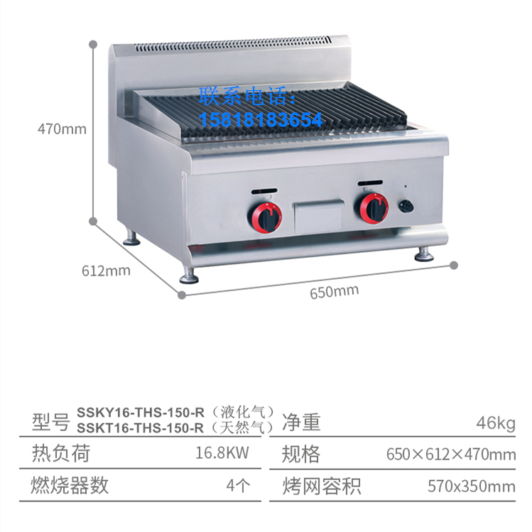 Desktop gas volcanic stone grill commercial THS-150-R natural liquefied gas frying grill
