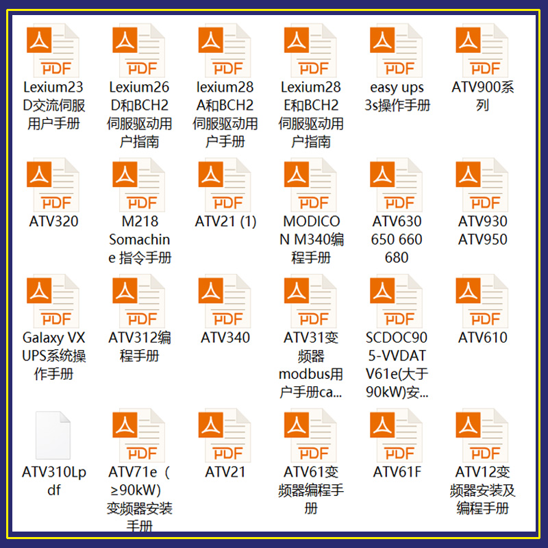 All packaged (more than 40 in total) Electronic version ATV71E Electronic version ATV71L Electronic version ATV71 Electronic version ATV71 electronic version not developed ATV650 electronic