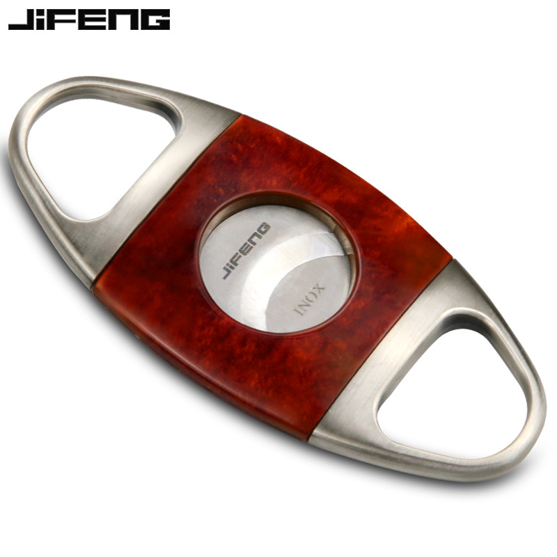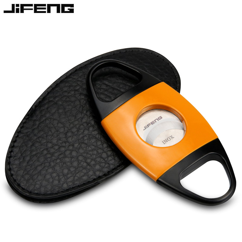 JIFENG Monsoon Cigar Cut Portable Cigar Knife Stainless Steel Cigar Pliers Professional Smoke With Double Edge Scissors Leather Sleeve-Taobao