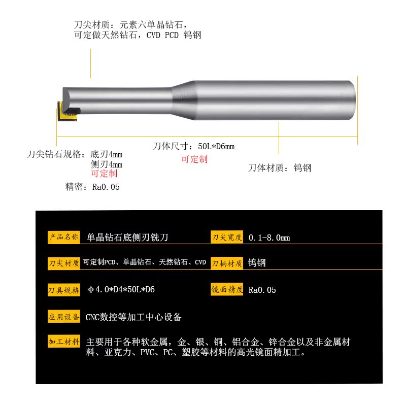 Natural single crystal diamond high light straight edge single-edge acrylic copper aluminium alloy mirror numerical control milling cutter engraving machine tool