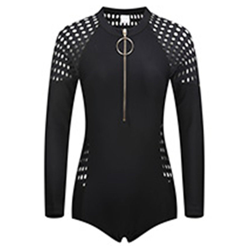 2020 new three chic swimwear women's summer sun protection long sleeve triangle with sexy hollowed-out black and white pure color surf