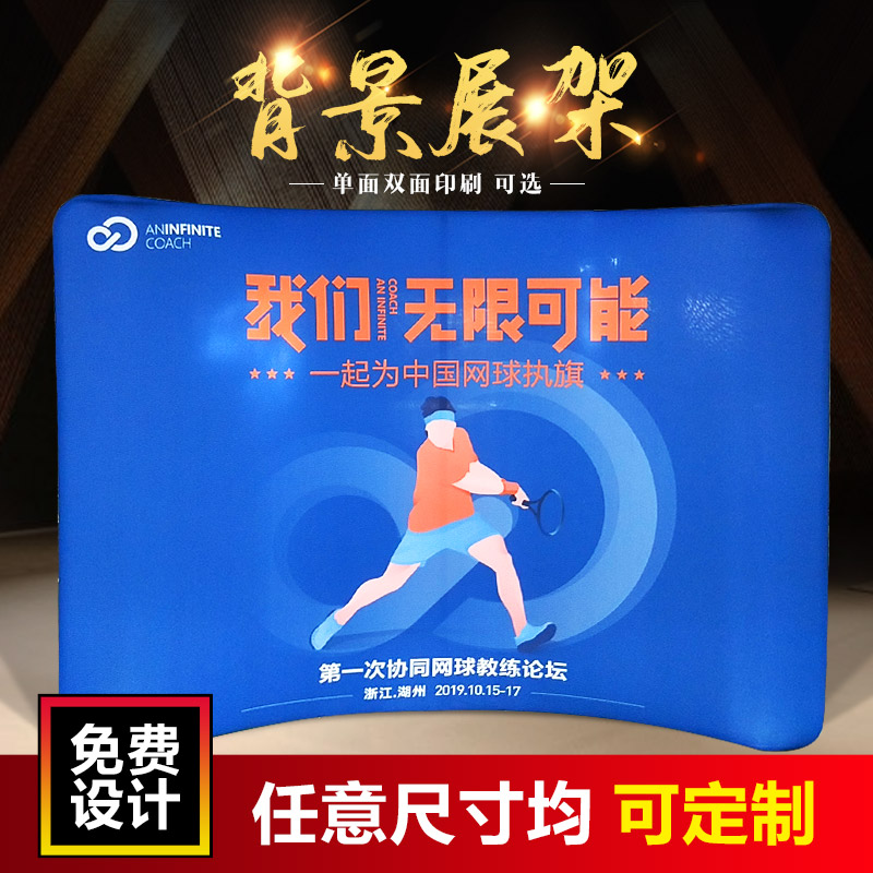 Outdoor Aluminum Alloy Quick Curtain Show Custom Arc S Shaped Exhibition Stand Activity Sign to Wall Background Folding Shelf