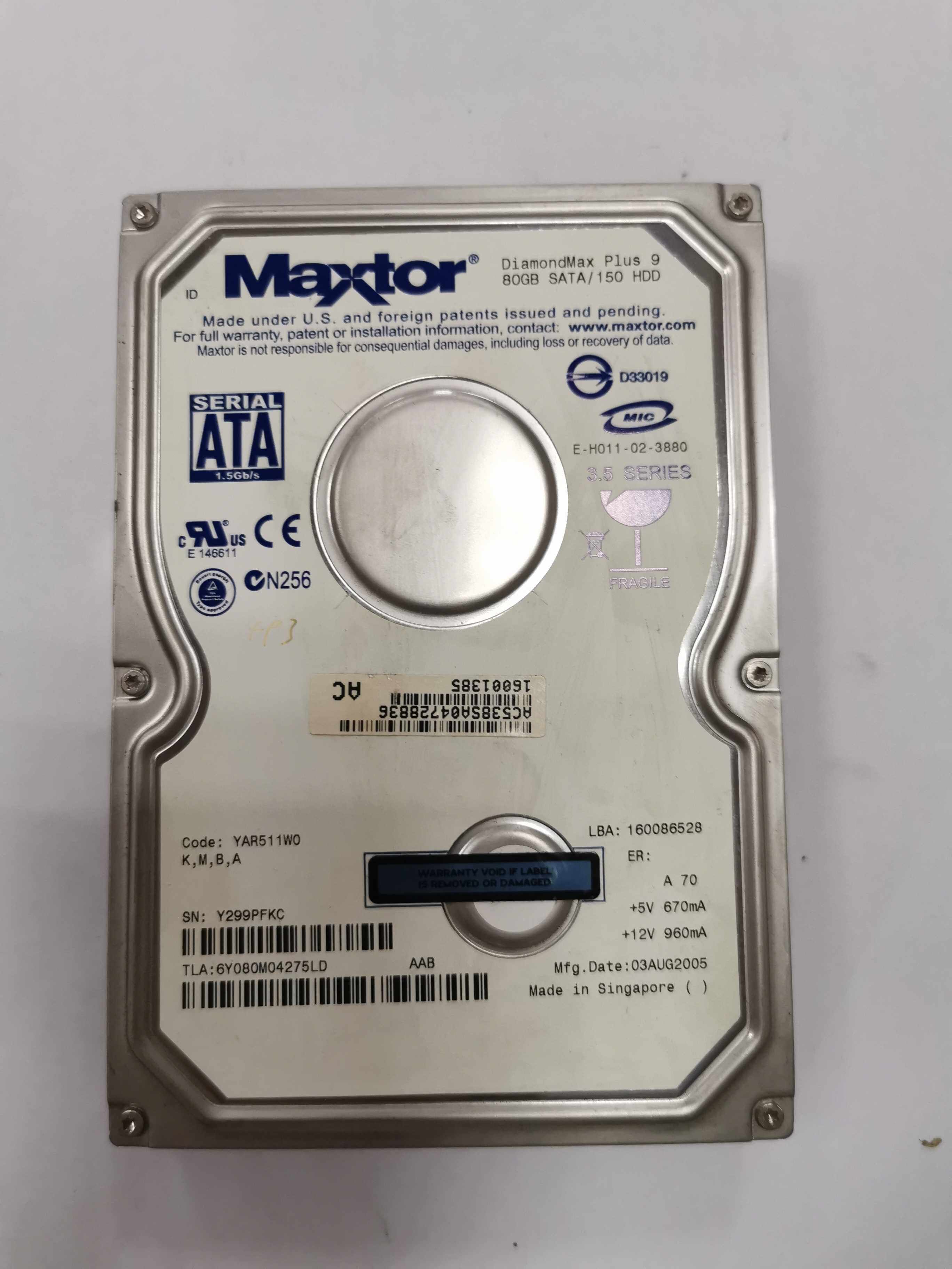 Maxtor Maituo hard disc 80g desktop computer 7200 turns 2M serial port sata 6L080MO 6v080E0