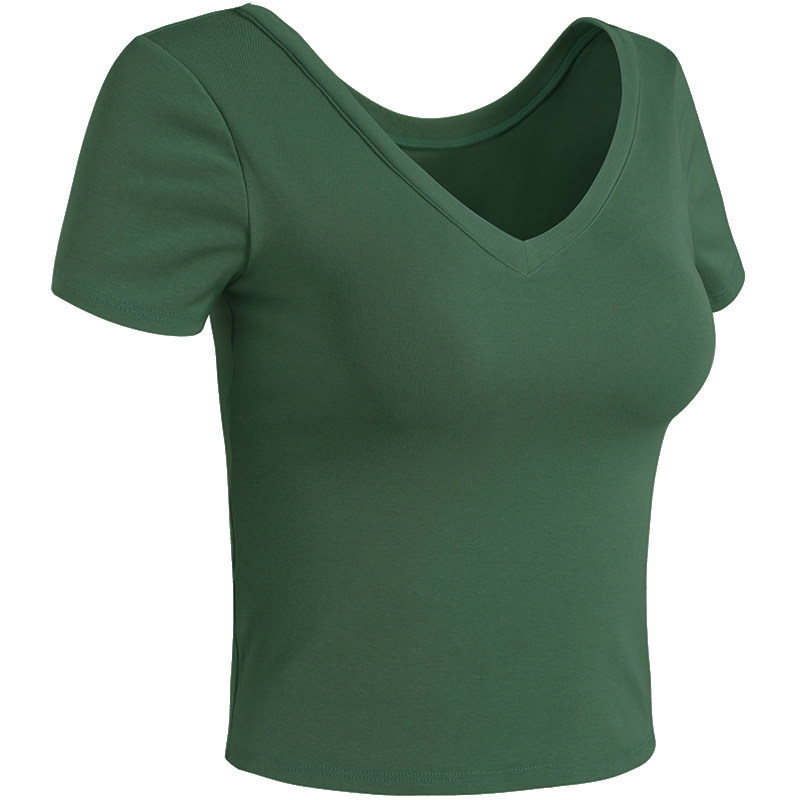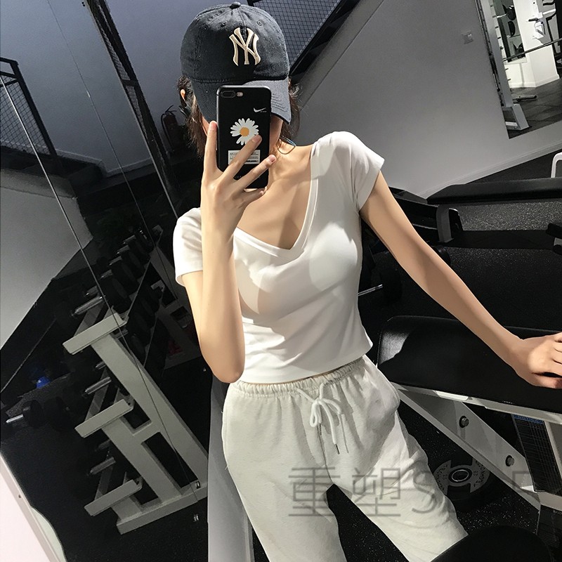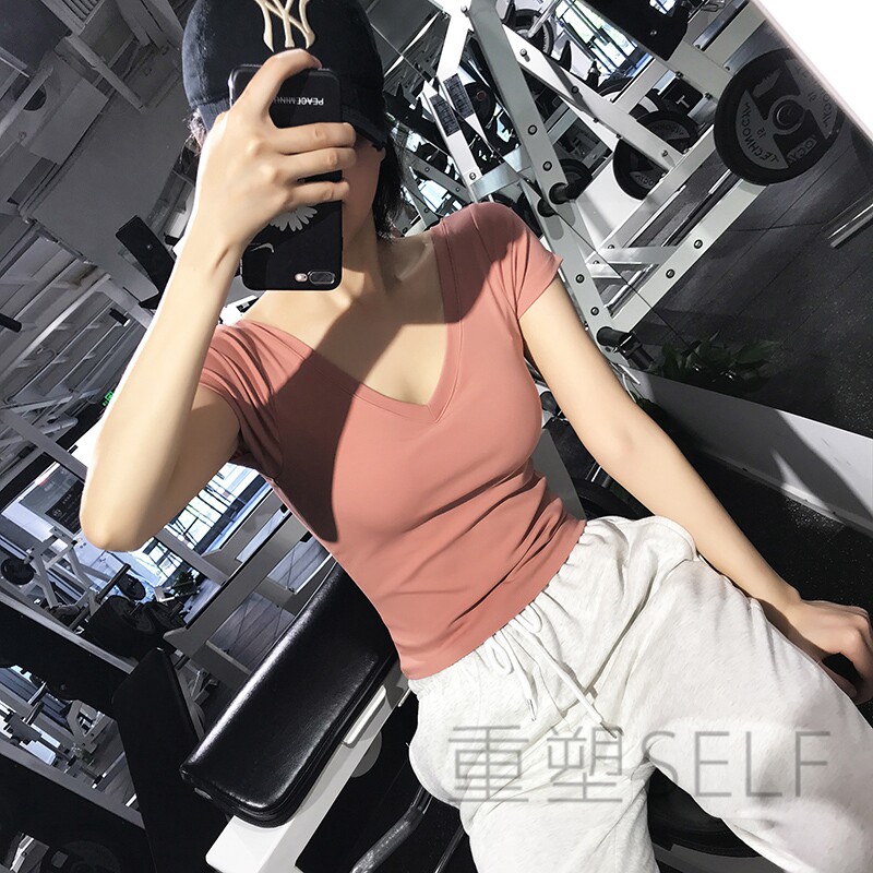 Strap with chest cushion sport T-shirt woman tight elastic speed dry V collar Sexy fitness blouse for running beauty back yoga half sleeve