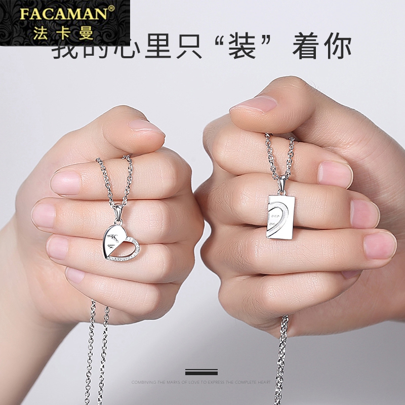 Couple necklace a pair of men and women pure silver pendant collarbone chain small crowddesign Yongknot concentric present to send girlfriend