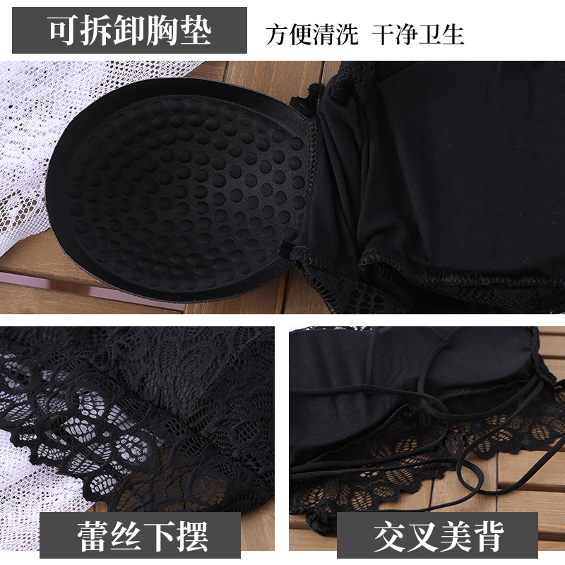 Beautiful back camisole small vest female net red hot style wrap chest lace bottoming shirt tube top gathered anti-glare underwear