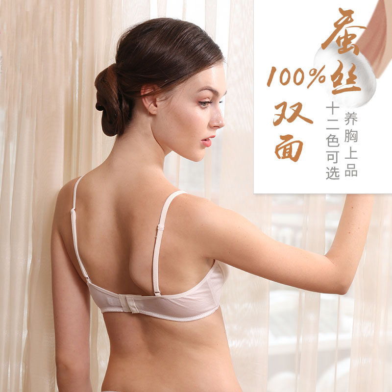 Silk underwear women's underwireless bra gathered ultra-thin glossy mulberry silk incognito sleep bra small chest beauty back