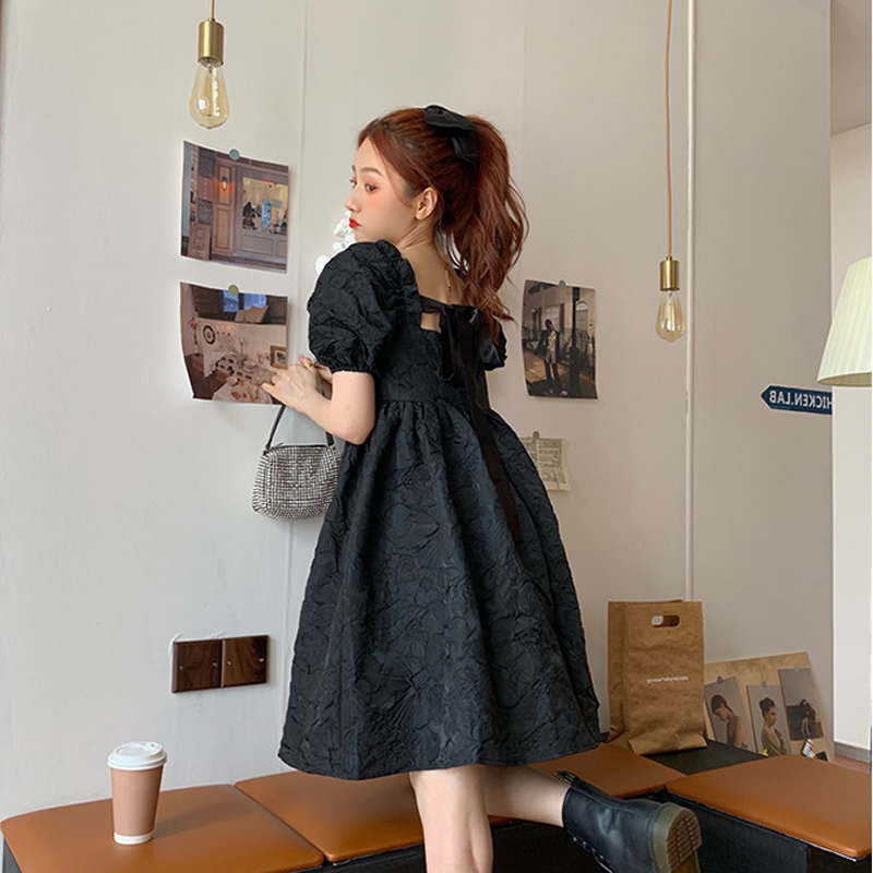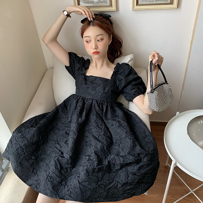 French Hepburn bubble sleeve dress 2023 Sweet first love line lovely princess skirt temperament little skirt female summer