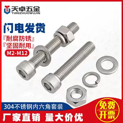 M10M12 304 stainless steel cup head hexagon socket screw nut set Bolt screw flat pad