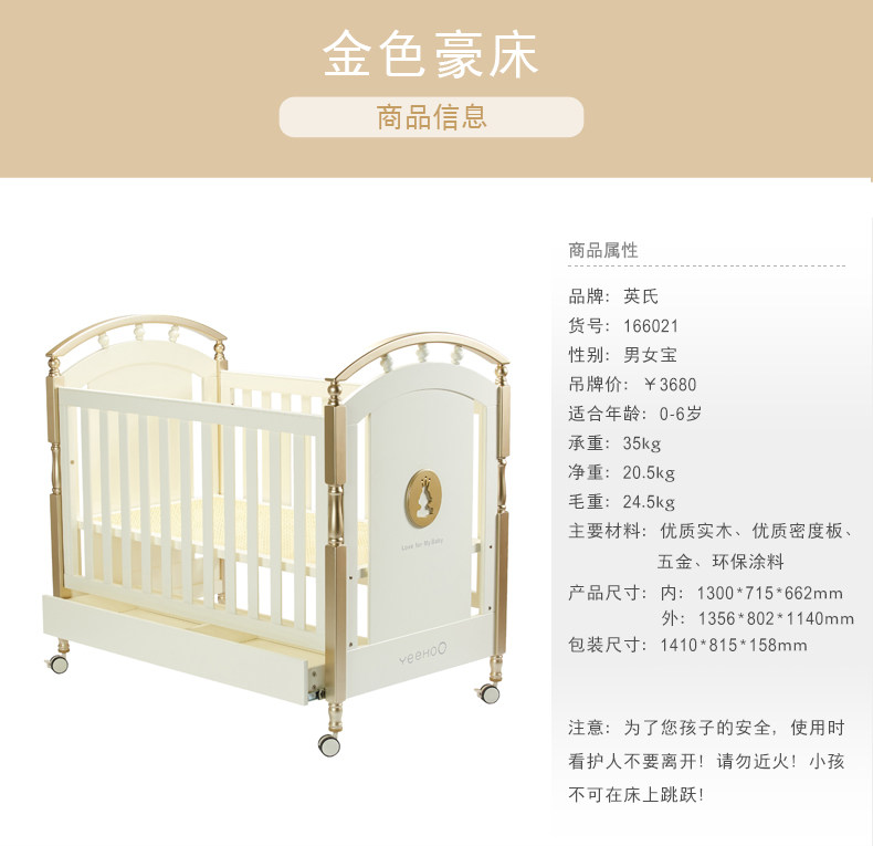 Yingzi's new golden luxury bed crib 176101 10098040 baby solid wood large bed child bed