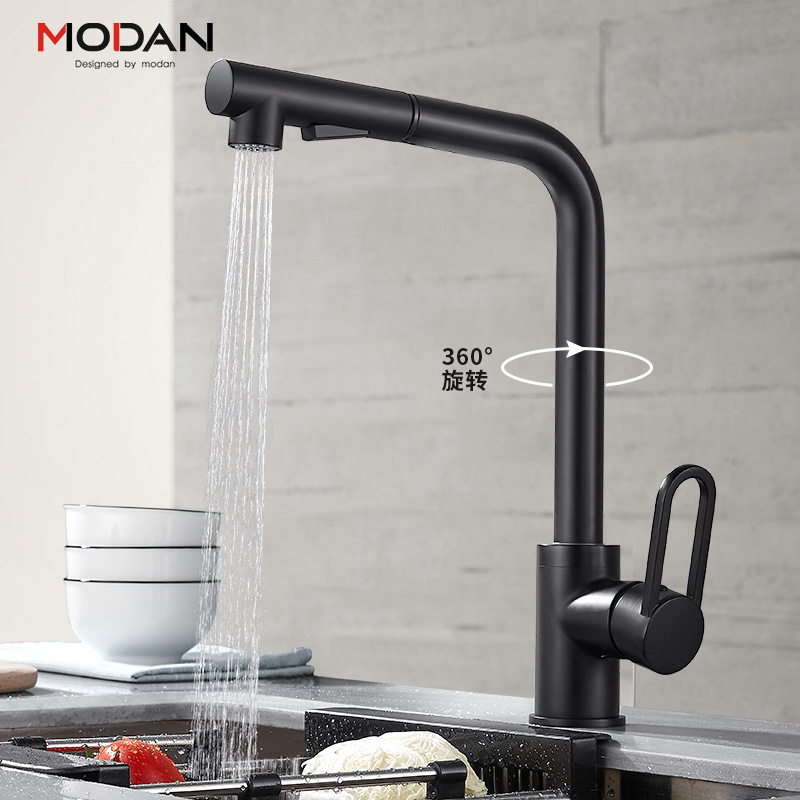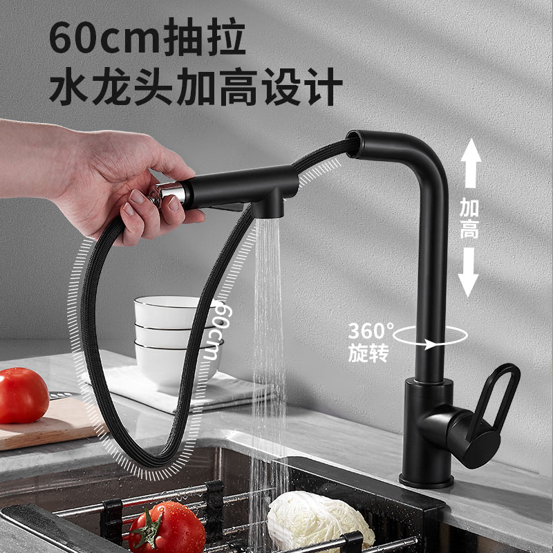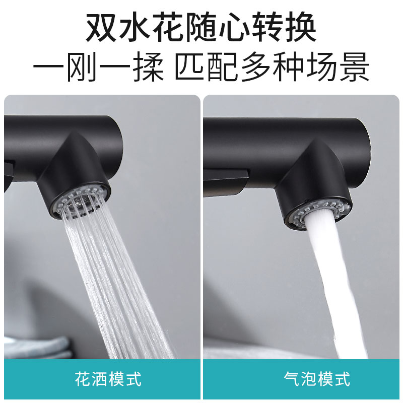 Kitchen faucet hot and cold pull-out sink sink retractable rotating black kitchen faucet splash proof