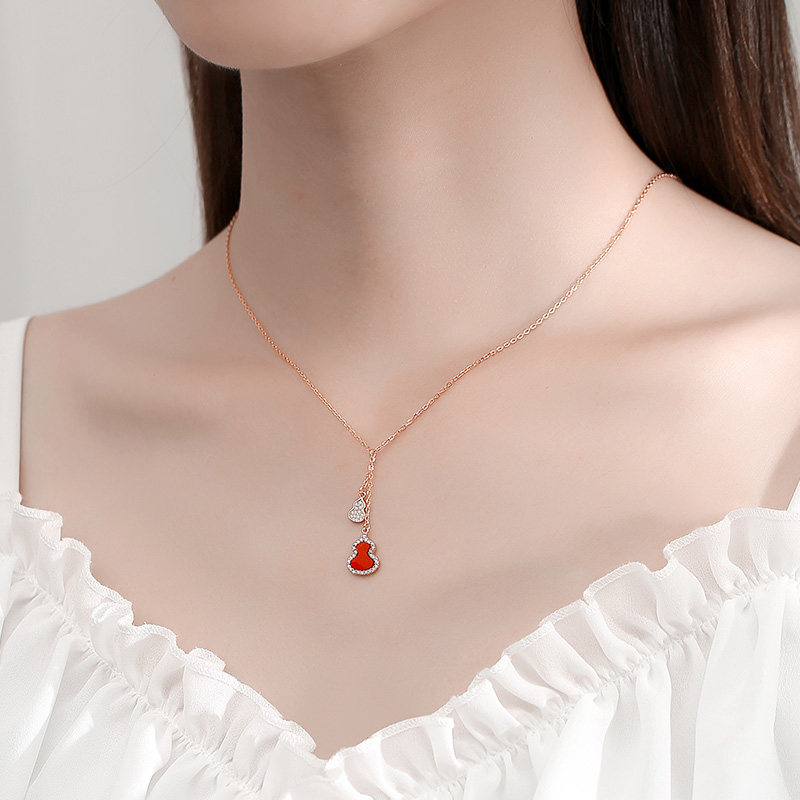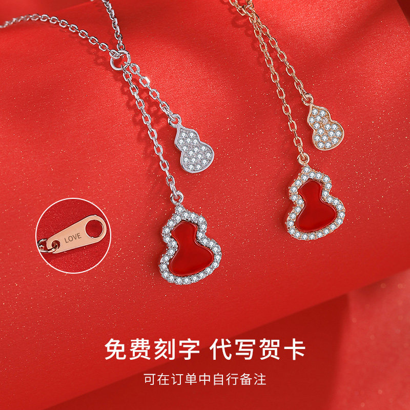 Happy gourd necklace female sterling silver clavicle chain light luxury niche design simple unicorn double pendant birthday gift