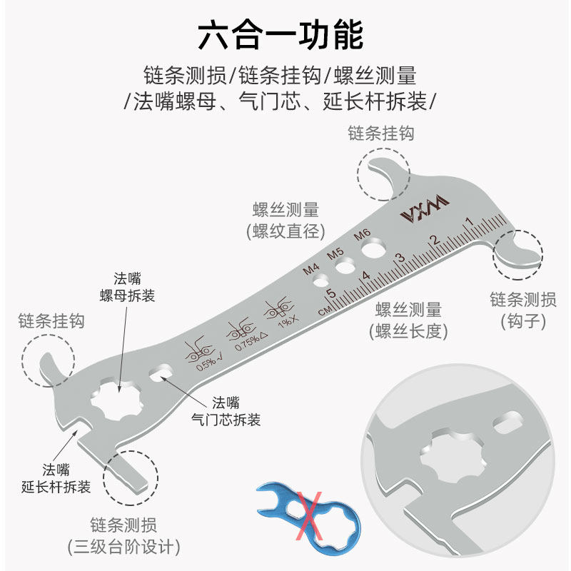 VXM mountain bike chain ruler bicycle six-in-one chain wear measurer bicycle road bike chain measuring ruler - Taobao