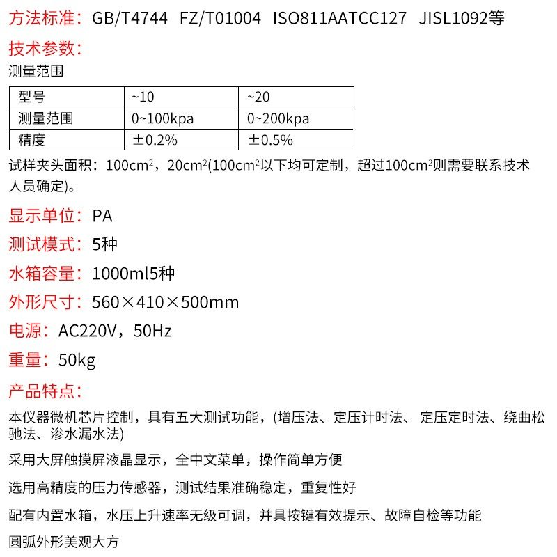Upgrade of hydrostatic pressure tester semi-automatic water seepage tester (0-50kp) hydrostatic pressure tester Full automatic fabric seepage tester 500KP hydrolysis test machine