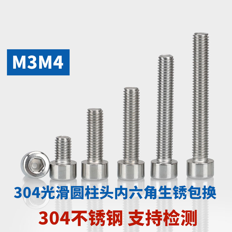 M3M4M5M6 304 stainless steel smooth cylindrical head hexagonal screw head without rolling screw GB70 1