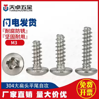 M3 304 stainless steel large flat head flat tail self tapping screw mushroom head flat tail tapping screw * 6 8 10 12TB