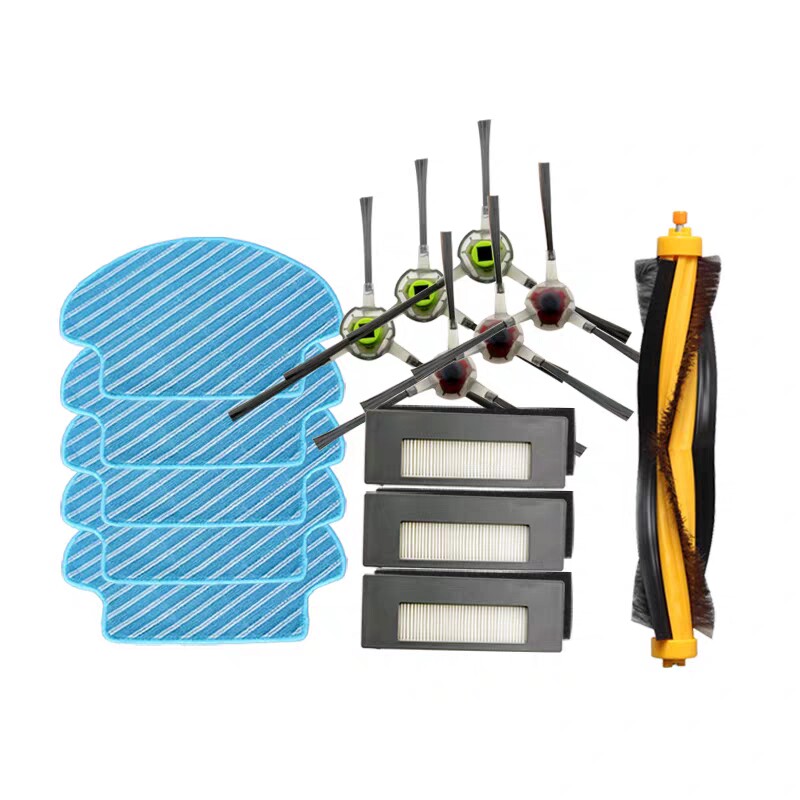 1 roller brush 6 side brushes 3 Hypa 5 rags 6 side brushes 5 Hypa 5 rags 10 side brushes 5 sets of Hypa 5 rags 1 roller brush 1 roller brush cover 1 suction port 1 dust cover