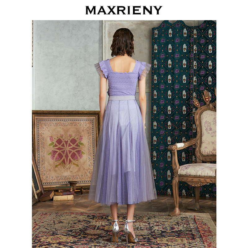 MAXRIENY Summer new web yarn Andromeda dress Skirt Plexigo Skirt Plexigo FASHION RETRO A-WORD HALF BODY DRESS SLIM FIT