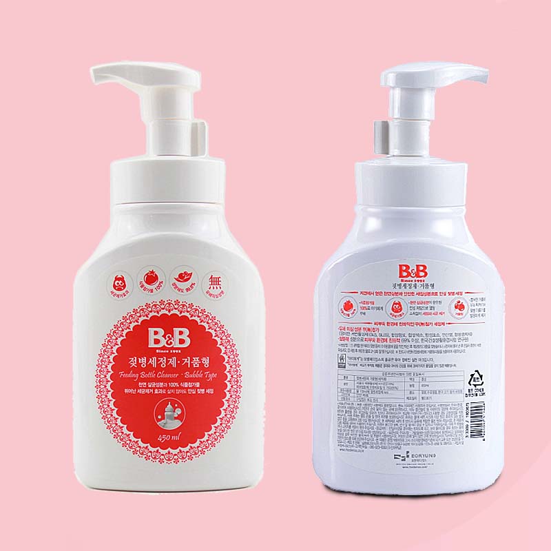 Korea Baoning infant milk bottle cutlery baby fruit and vegetable cleaning liquid foam type 450ml 400ml combined dress