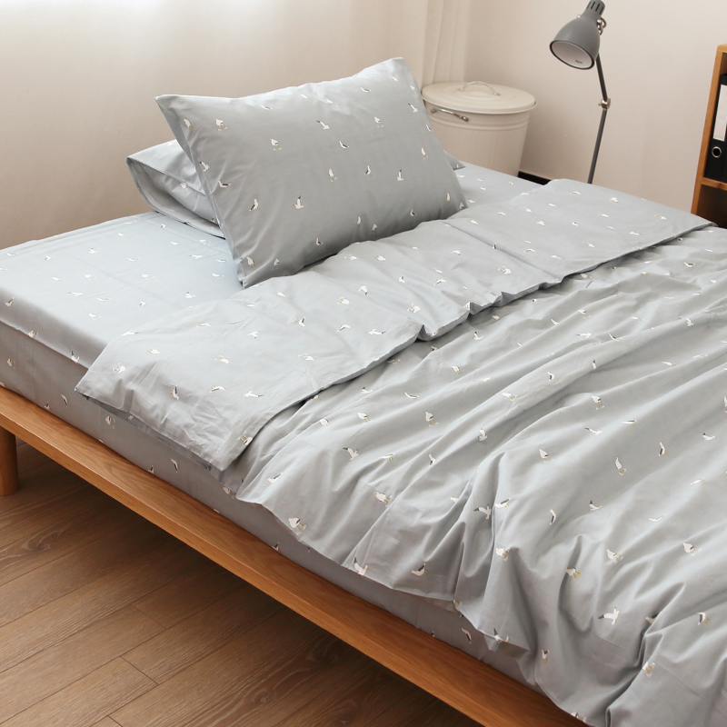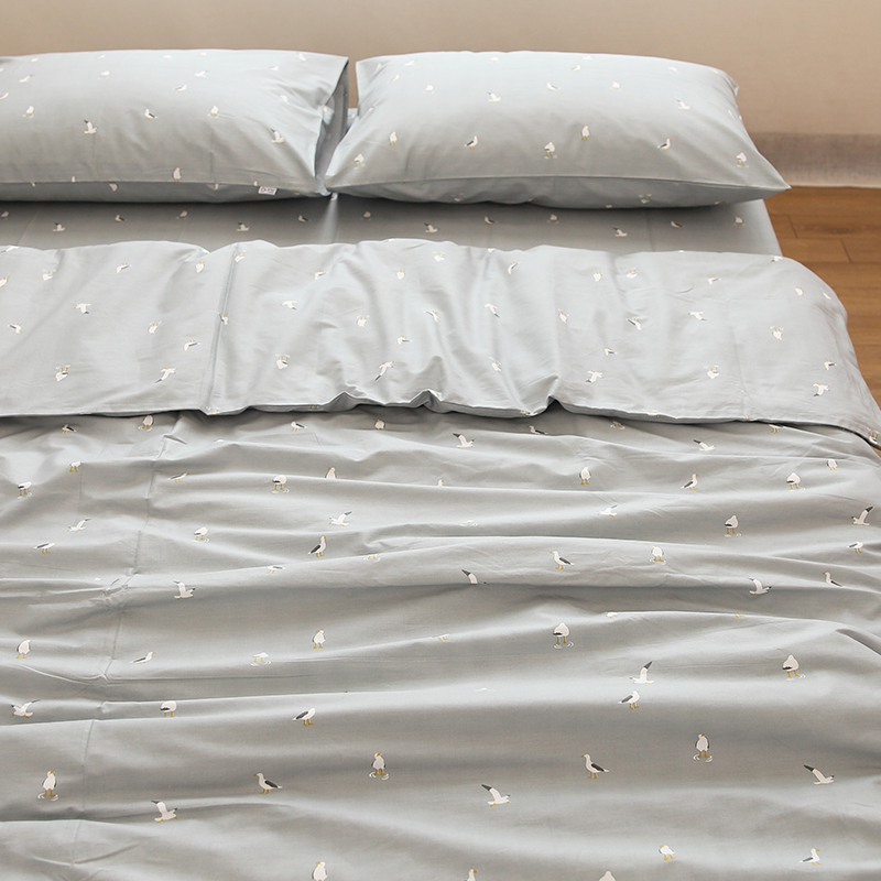 Seagull Grey Cartoon Minimun Atmosphere Pure Cotton Full Cotton Pillowcase Can Be Set