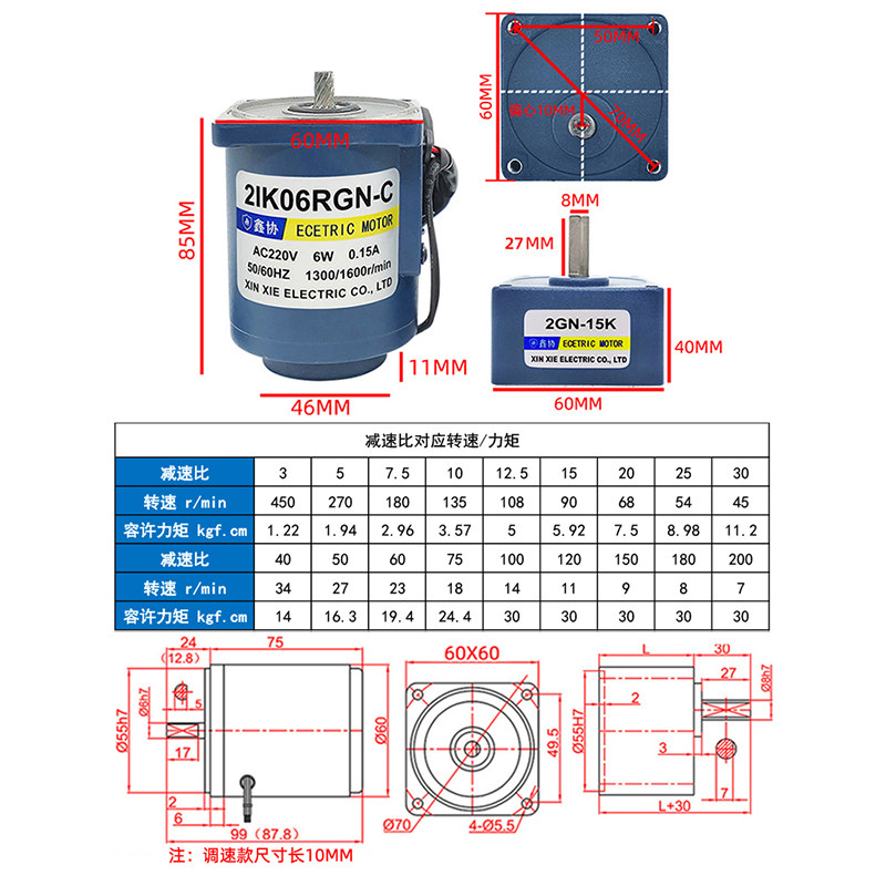 Gear motor 220V AC gear small slow motor 6W high torque speed motor Positive and negative motor