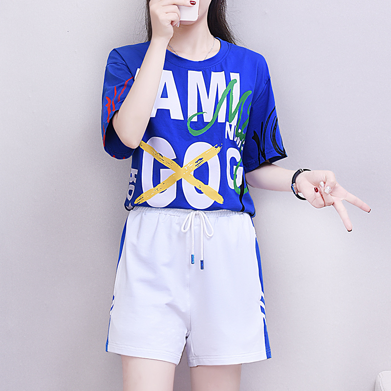 2022 spring sports suit women's hip-hop cotton autumn loose and thin short-sleeved fashion casual two-piece