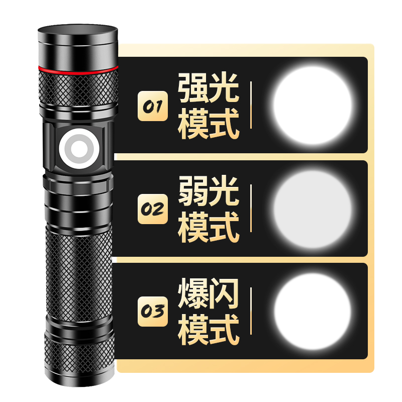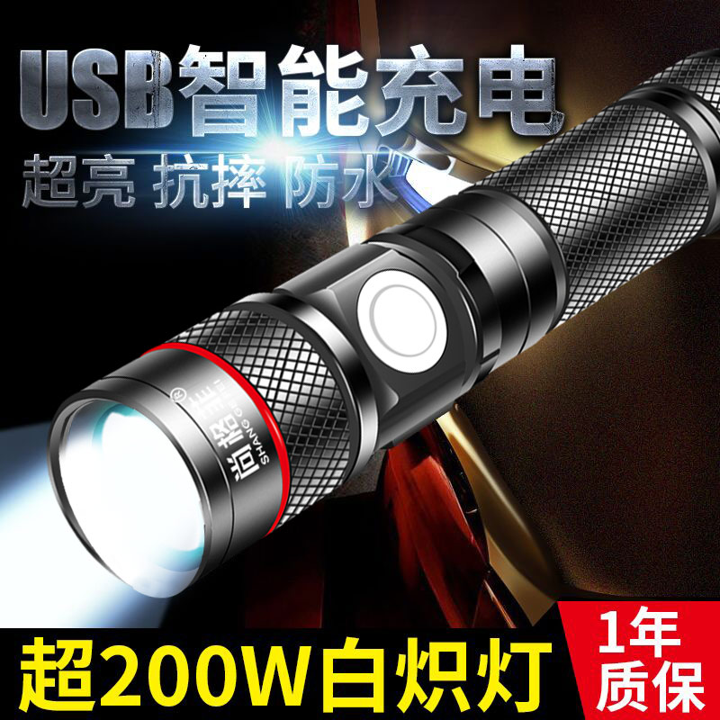 Flashlight Strong light USB rechargeable ultra-bright small xenon lamp Outdoor portable home mini LED long-range light