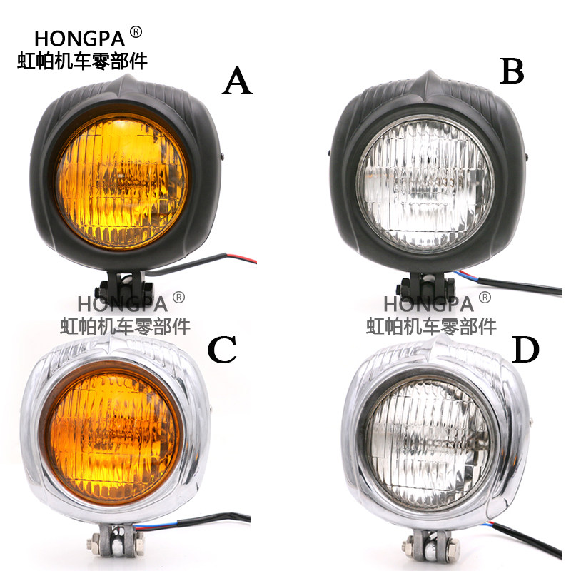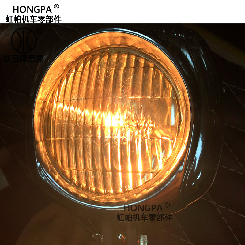 Retro Mormon retrofit Hallystick Wang front light Universal 12V lights aluminium alloy polished yellow glass headlight assembly