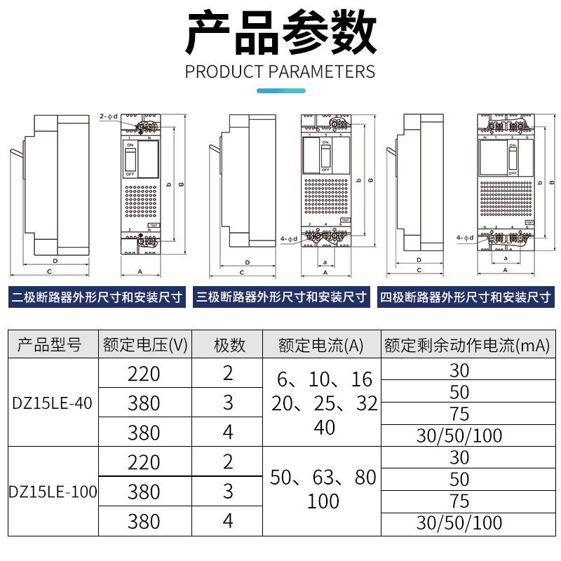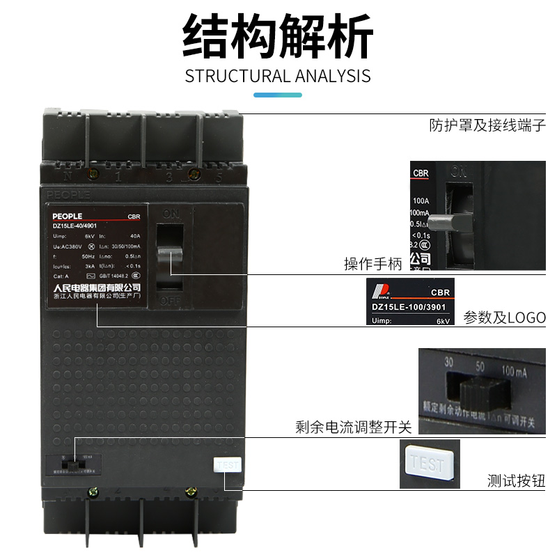 DZ15LE earth leakage protector three-phase four-wire 100-4901 plastic shell earth leakage circuit breaker 3901 People's appliances