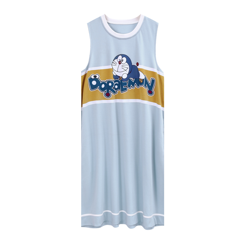 Arctic velvet cartoon night dress women's summer sleeveless vest mid-length dress pure cotton pajamas women's spring and summer thin home clothes