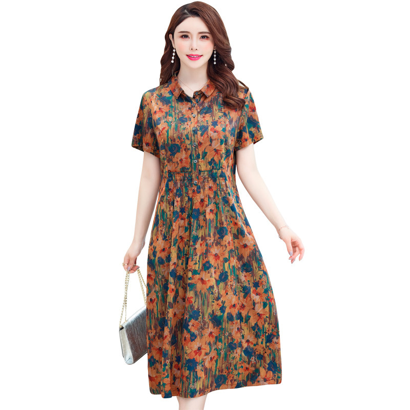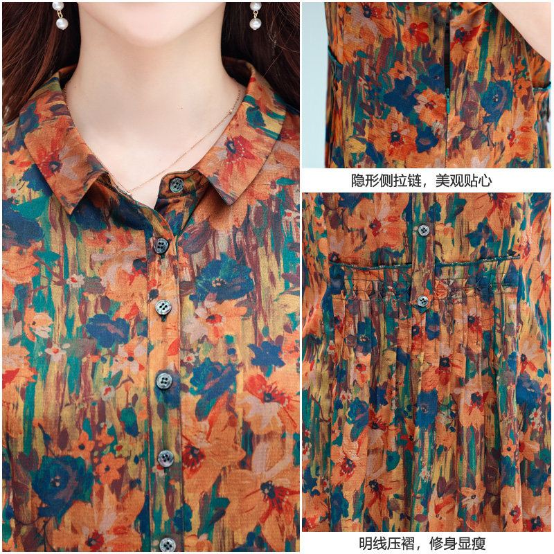 Silk shirt dress female 2021 summer new middle-aged mother thin fragrant cloud yarn mulberry silk Hangzhou floral skirt