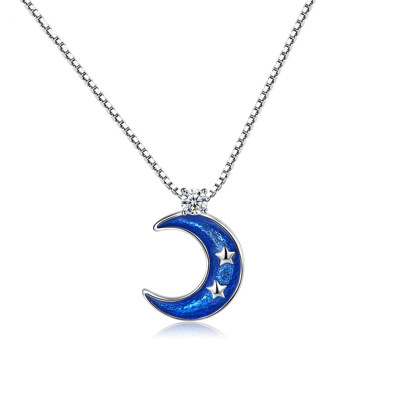 Moon Necklace Woman Pure Silver Tide Net Red Star Lock Bone Chain Pendant Light Lavish Couple Gifts To Remember The Little Crowddesign