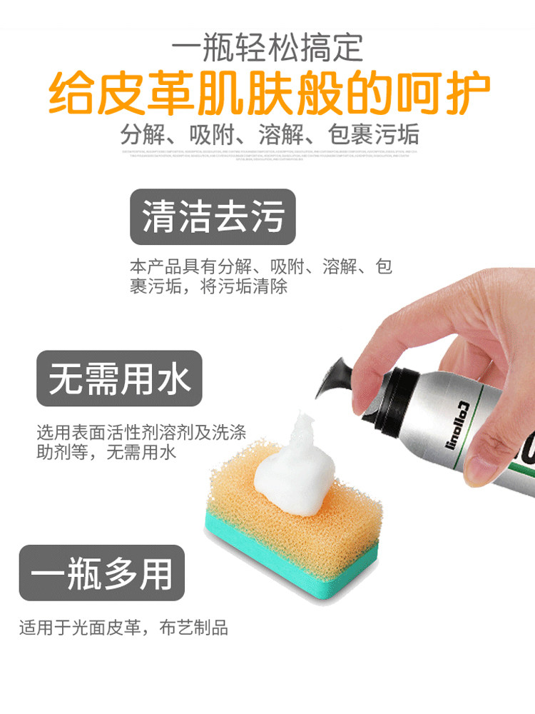 Colonil Leather Leather Clothing Clad Foam Cleaning Cleaning Agent Decontamination maintenance free of washing leather Leather Leather Shoes Beauty mousse