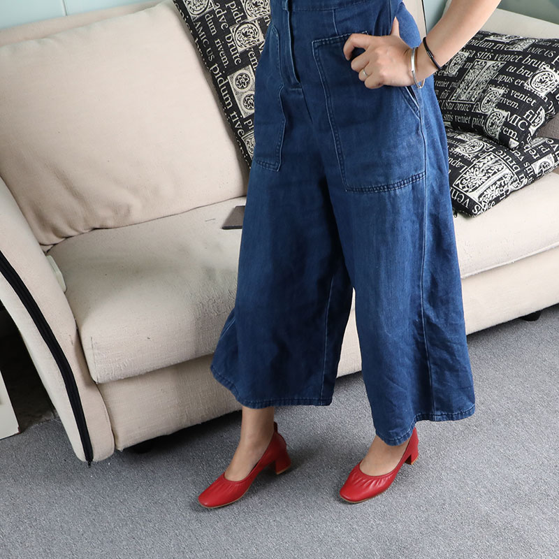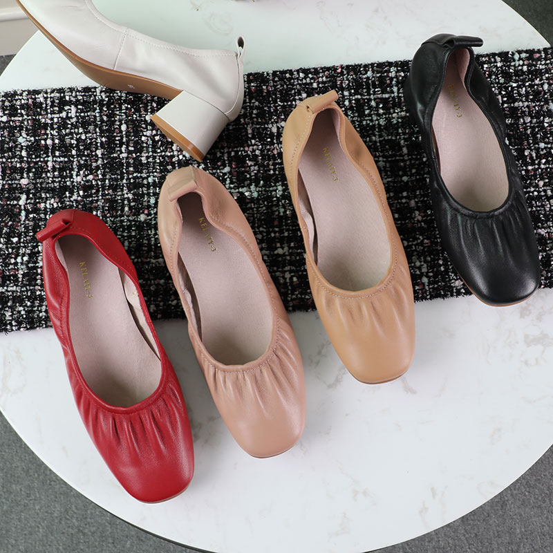 Soft-leather Grandma Shoes Spring and Summer Commuted Rough Fold Female Single Shoes retro-size code real leather shallow head heel