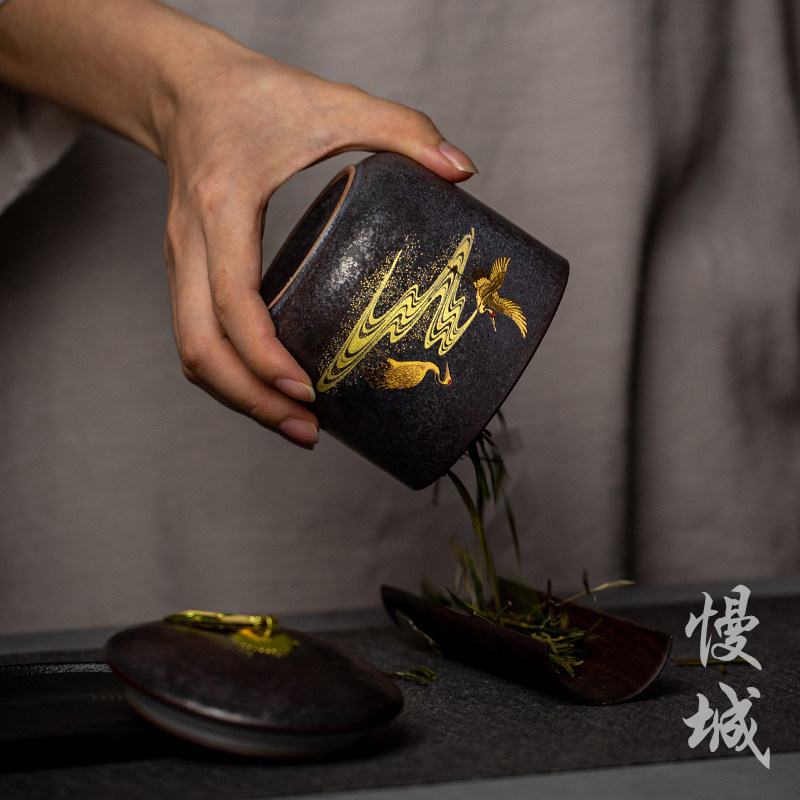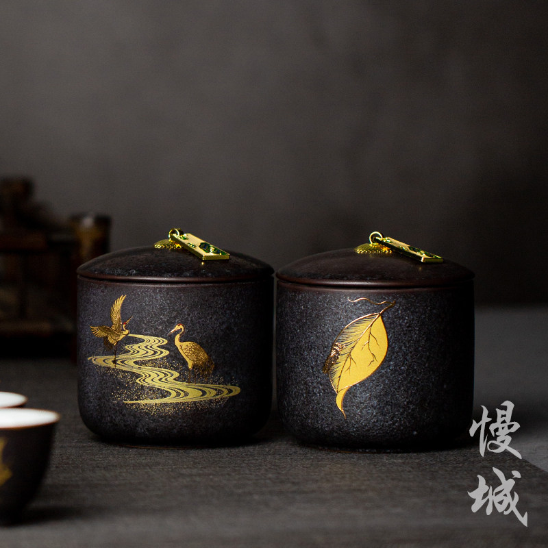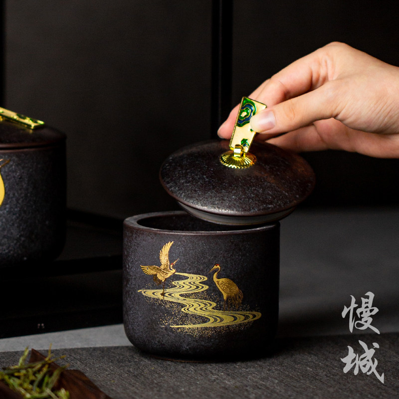 Ceramic tea leaf tank moisture-proof retro tea storage tank sealed tank to store tea pot silver spot glazed home storage tea bin