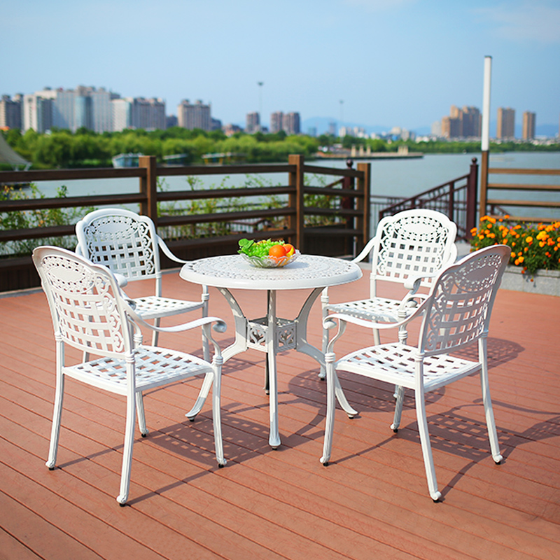 Outdoor cast aluminum tables and chairs European style minimalist outdoor garden balcony tables and chairs three or five pieces set white villa courtyard tables and chairs