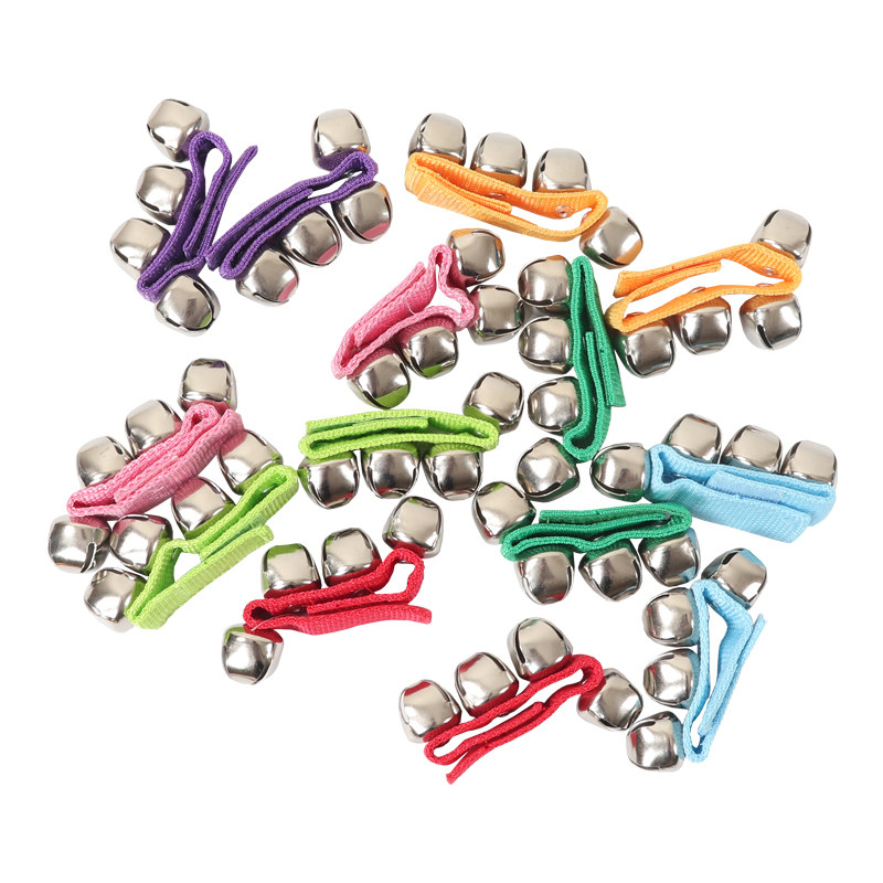 Pink wrist bells a pair of light green wrist bells a pair of purple wrist bells a pair of green wrist bells a pair of blue wrist bells a pair of red wrist bells a pair of yellow wrist bells a pair