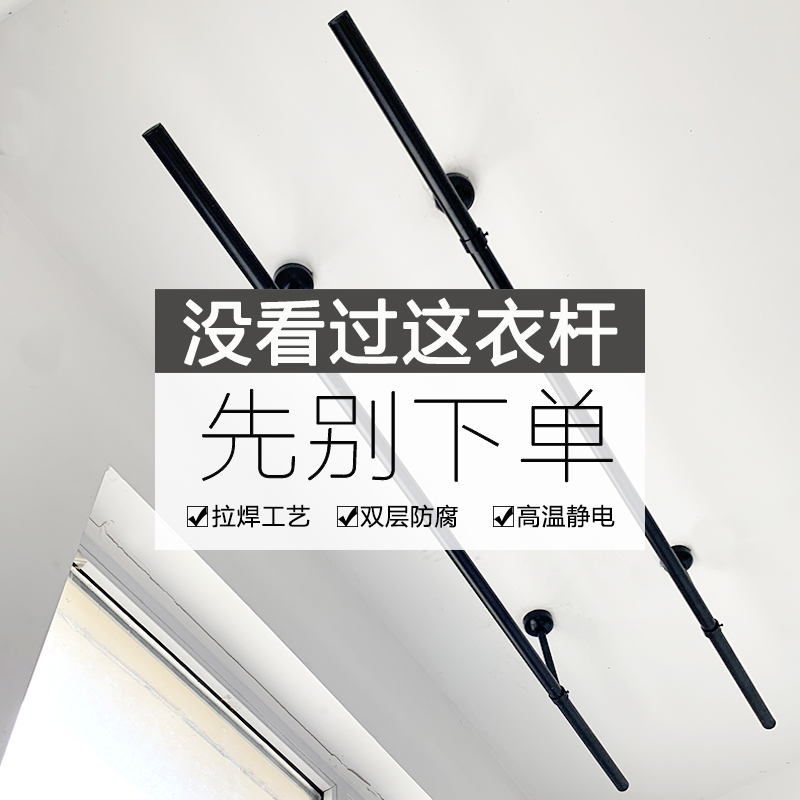 Guxin balcony stainless steel fixed drying rod 32 thick drying rack top mounted simple hanging drying rod single rod black