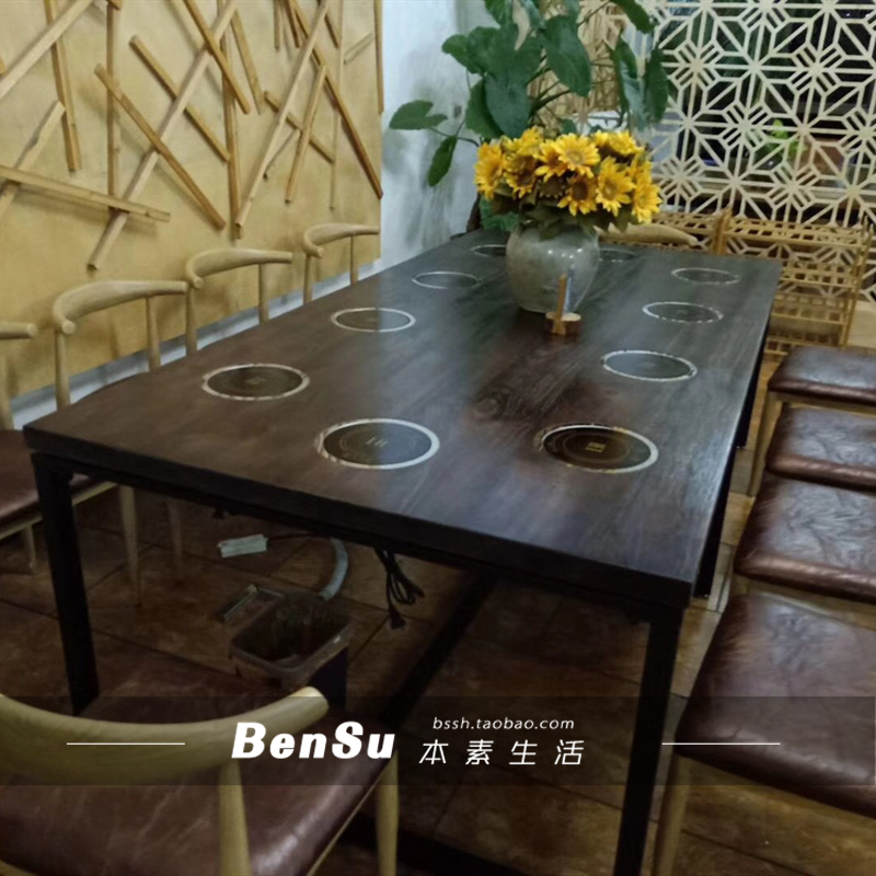 Solid wood one-one-pot smoke-free little hot pot table and chairs combined round table commercial induction cookers hotel table custom