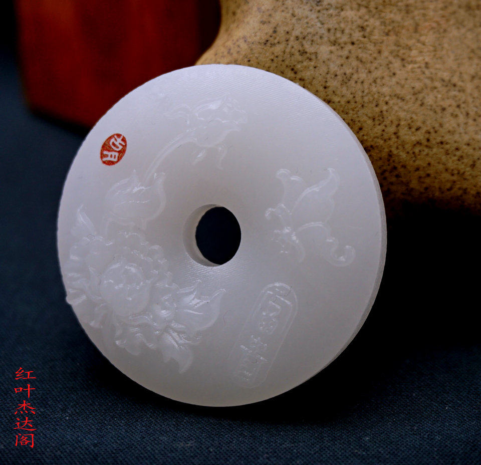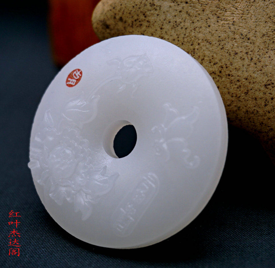 Afghan jade peony flower round card Butterfly love flower pendant neck ornament white jade flower blossom rich jade pendant sweater pendant ancient style