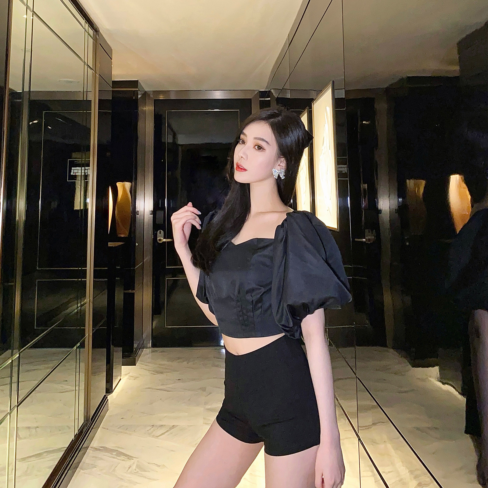 Limited time 30% off nicky design sense niche puff sleeves loose sweet sexy short crop top women 2022