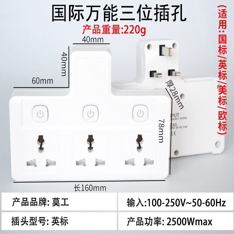British standard multi-purpose socket universal converter porous wireless drag plate USB plug-in row one-to-two multi-function Hong Kong version