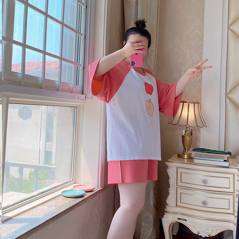 2020 summer new large size pajamas fat MM200 catties can be worn outside the home clothes loose comfortable fashion two-piece women
