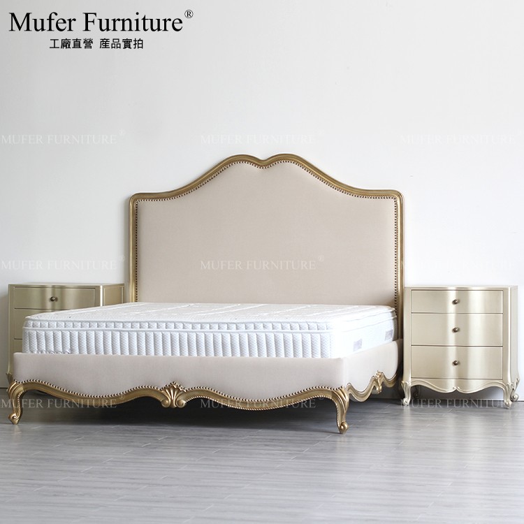 Mu Fei furniture) American Neoclassical light luxury solid wood bed 1 8 meters master bedroom European modern simple fabric double bed
