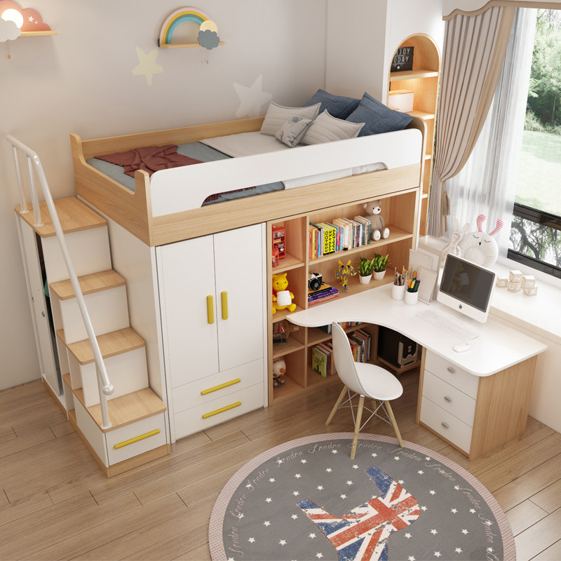 Ladder cabinet bed wardrobe corner desk (no chair) upgrade version ladder cabinet bed small vertical cabinet corner desk (no chair) upgrade version ladder cabinet bed wardrobe right-angle desk (upgrade version)