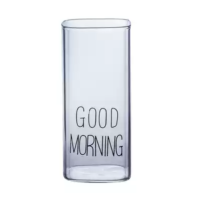 Creative single layer ins glass water cup single layer square goodmorning milk cup milk breakfast cup direct sale