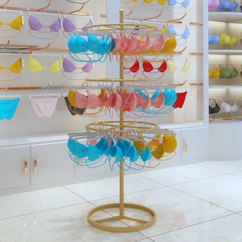 Rotating underwear display rack floor red underwear shop bra short panties shelf Nakajima round sock rack