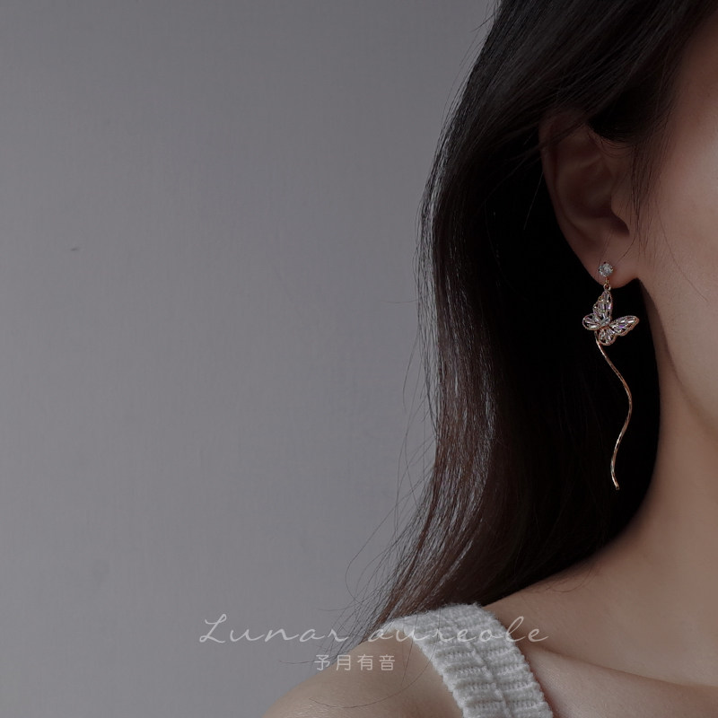 Yuyue Youyu Butterfly Stud Earrings Asymmetric Design Niche Original Simple Temperament Sweet Cool Dark Earrings Women