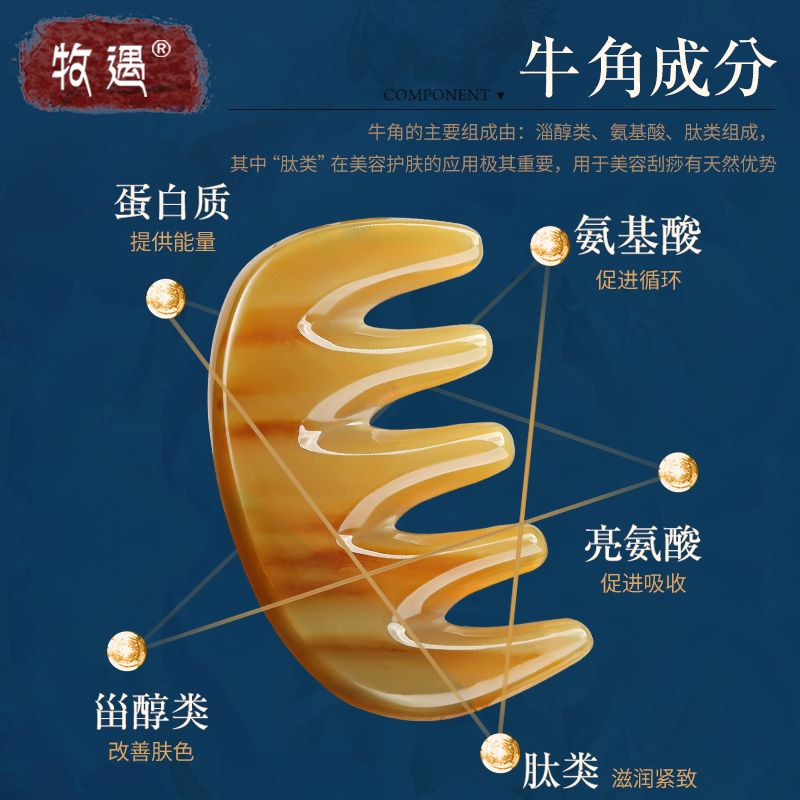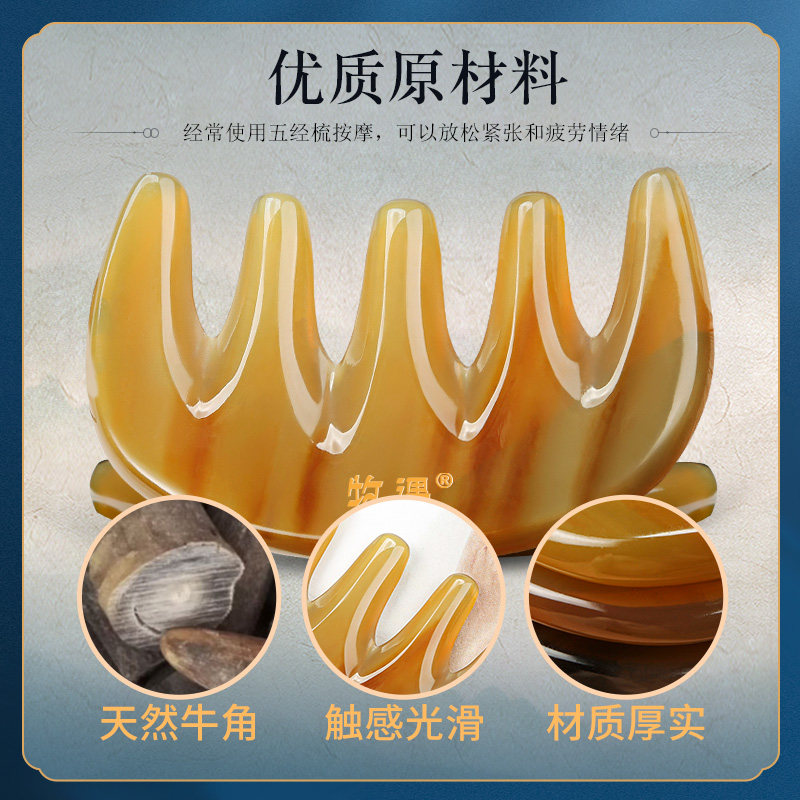 Muyu Horn Comb Natural Head Meridian Five Meridian Comb Big Teeth Five Tooth Massage Comb Official Flagship Store